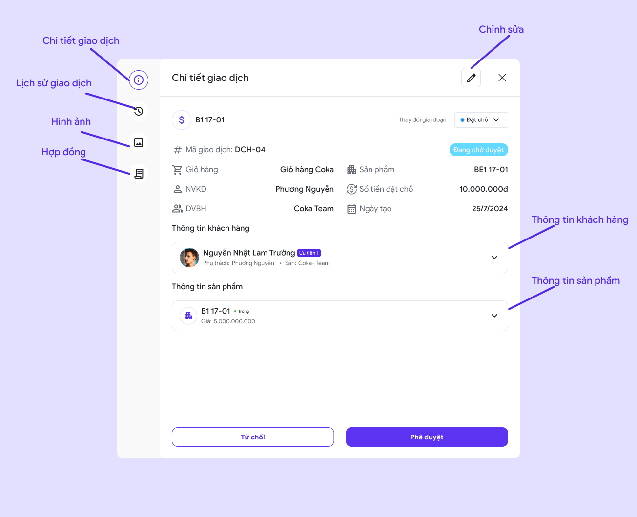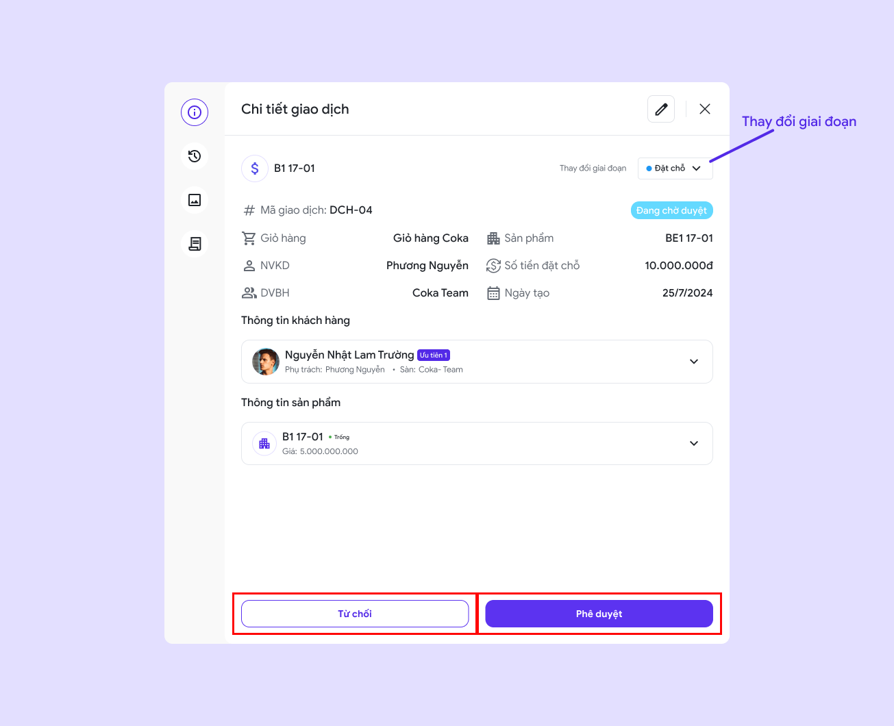 * Nếu từ chối thì giao dịch sẽ đổi sang giai đoạn huỷ.