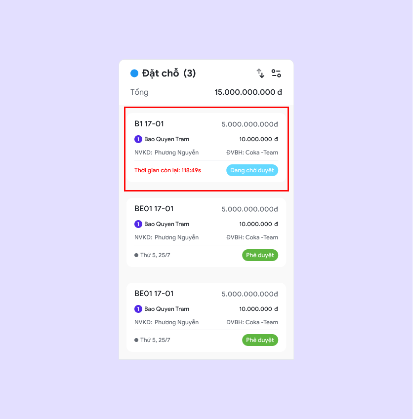 ### 2. Phê duyệt giao dịch